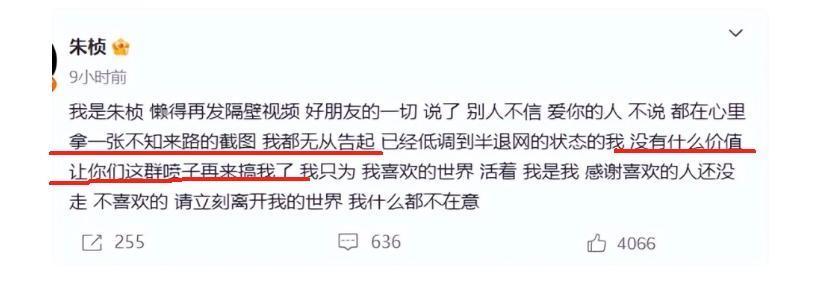 看朱桢发布的著述,本体写得很迟滞,并莫得点明我方报警的具体原因,针对什么事情,他不思再发一遍视频,一张不知来路的截图,让朱桢王人不知谈从何告起。他自嘲说我方照旧低调到半退网,莫得什么价值让喷子再来搞,咫尺的我方只为心爱的宇宙在世。